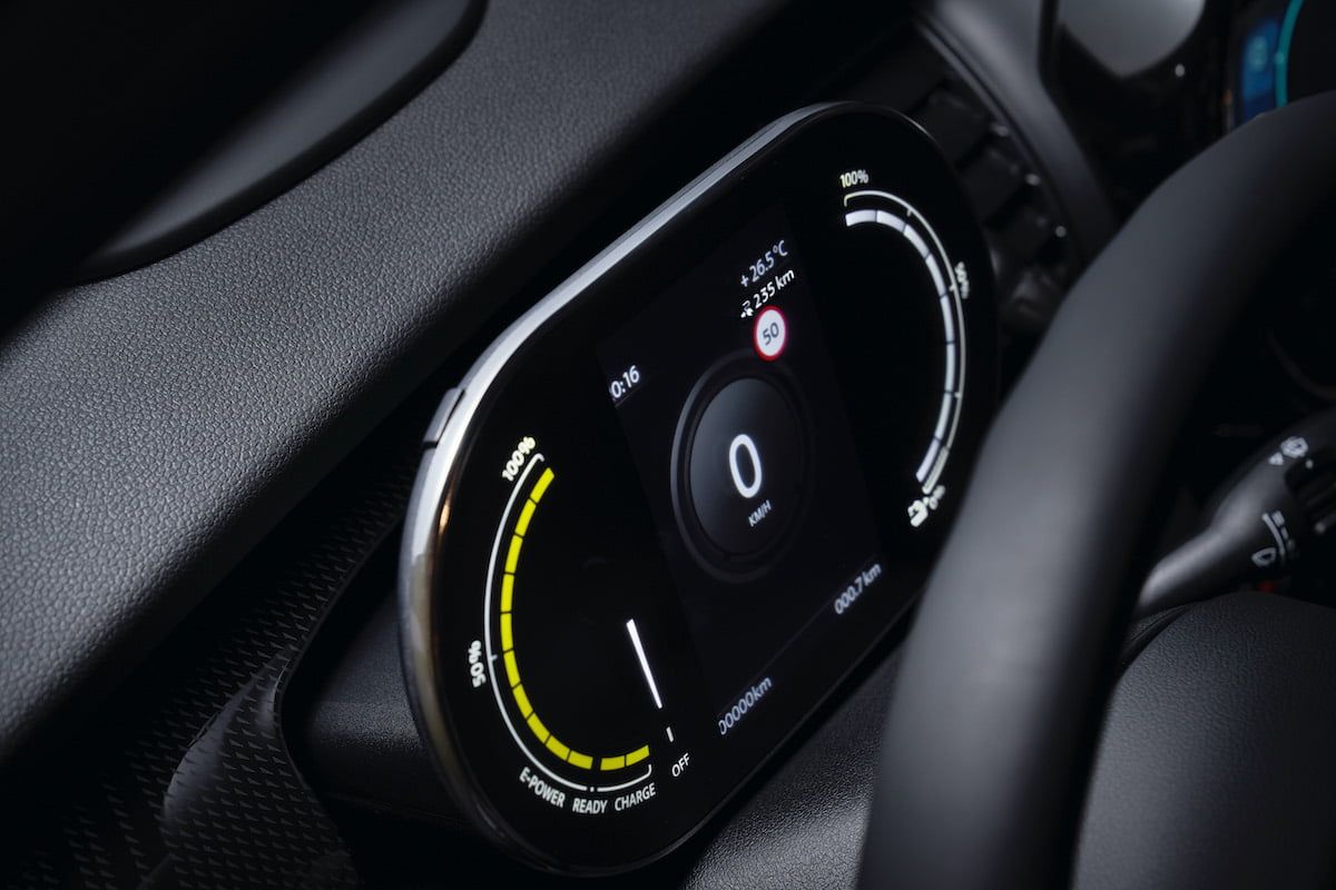 Der neue MINI Cooper SE verfügt serienmässig über das neue digitale Instrumenten, das aus einem 5,5 Zoll grossen Farbdisplay im Black-Panel-Design hinter dem Lenkrad besteht. Im Zentrum des volldigitalen Displays wird die Fahrgeschwindigkeit in Ziffernform sowie mit einem umlaufenden Skalenband dargestellt.