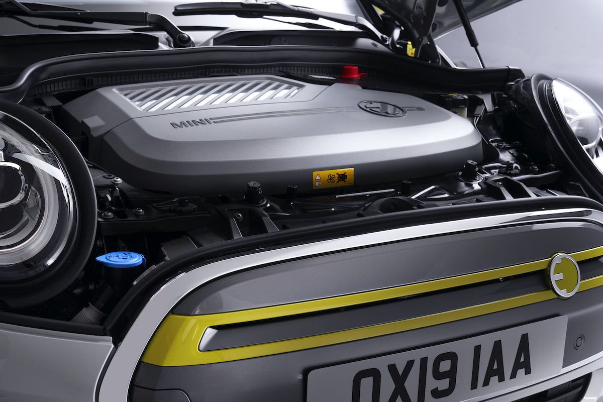 Das Fahrzeugkonzept vom MINI Cooper SE basiert auf dem MINI 3-Door. Abmessungen, Design, Platzangebot und Innenraumambiente des neuen elektrischen MINI orientieren sich klar am herkömmlich Modell. Die modellspezifisch konfigurierte Hochvoltbatterie besteht aus Lithium-Ionen-Zellen, die in 12 Module unterteilt sind. Sie bilden eine T-förmige Speichereinheit, die im Fahrzeugboden positioniert ist, damit der MINI kaum an Innenraumvolumen verliert. Der Brutto-Energiegehalt der Batterie entspricht 32,6 kWh.