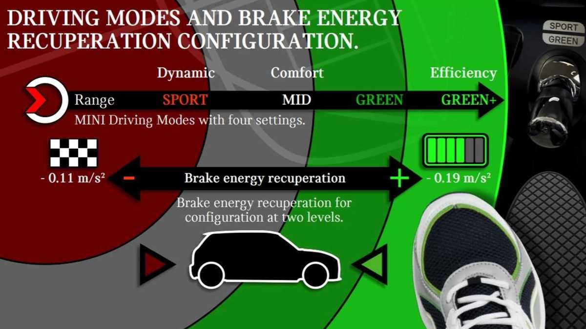 Der Fahrer hat im MINI Cooper SE also die volle Kontrolle über Reichweite, Komfort und Fahrspass. Nur, alles miteinander gibt es mit den jeweiligen Abstrichen.