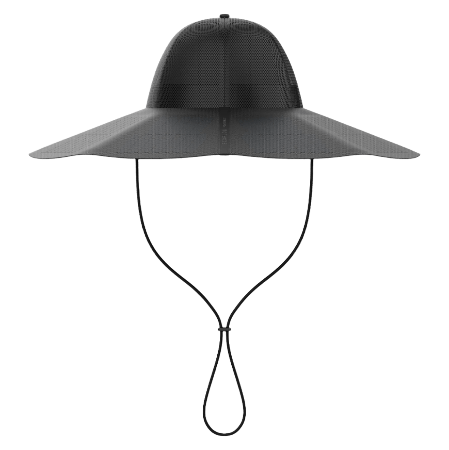 Der Sonnenhut „Power Hat“ erfüllt den Wasserspritzschutz IP65, wiegt 137 Gramm, kann gefaltet werden und hat einen USB-A und USB-C Anschluss um Geräte mit Strom zu versorgen.