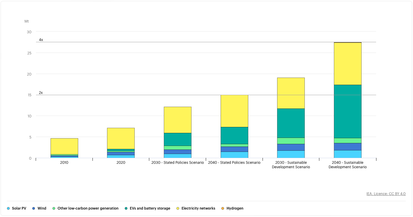 Und wenn wir schon den Blick in die Zukunft wenden, natürlich steigt der Bedarf der Mineralien mit dem Voranschreiten der erneuerbaren Energien. Auch dazu gibt es von der IEA eine Hochrechnung.
